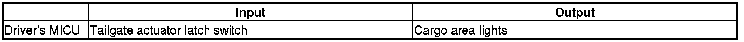 The driver's MICU controls the cargo area light OFF timer based on tailgate actuator latch switch inputs.