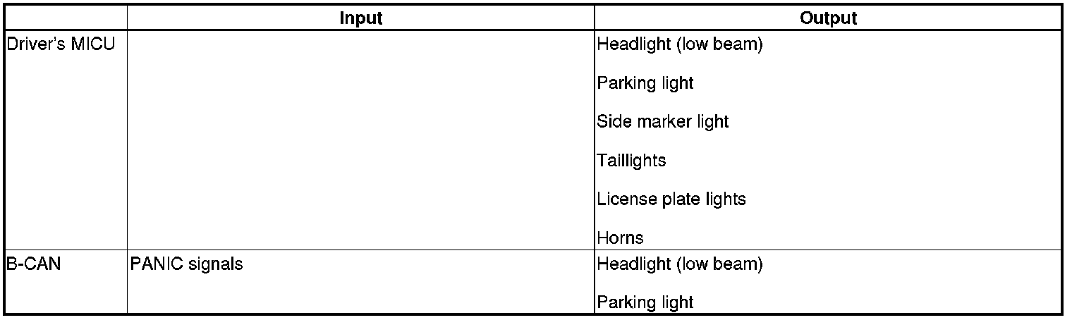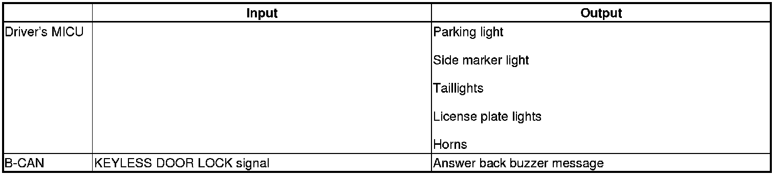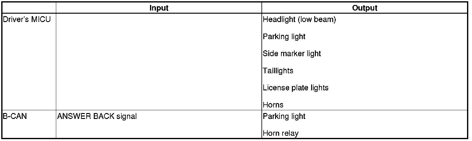 The driver's MICU controls the lighting system and horns based on keyless signals sent by B-CAN.