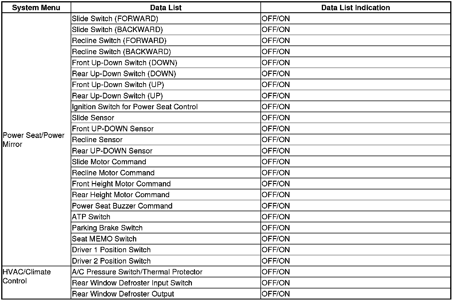 Certain inputs happen so quickly that the Data List on the HDS cannot update fast enough. Hold the switch that is being tested while monitoring the Data List. This should give the HDS time to update the signal on the Data List.