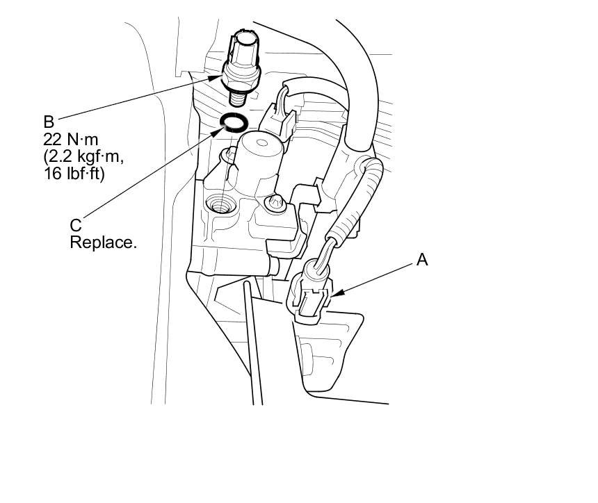 3. Install the parts in the reverse order of removal with a new O-ring (C).