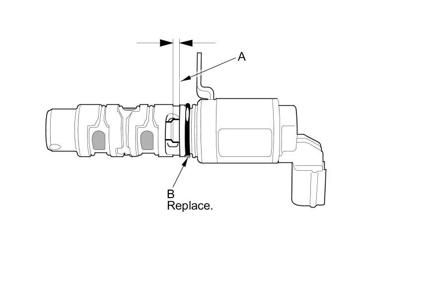- If the clearance is as specified, the valve is OK; reinstall it with a new O-ring (B).