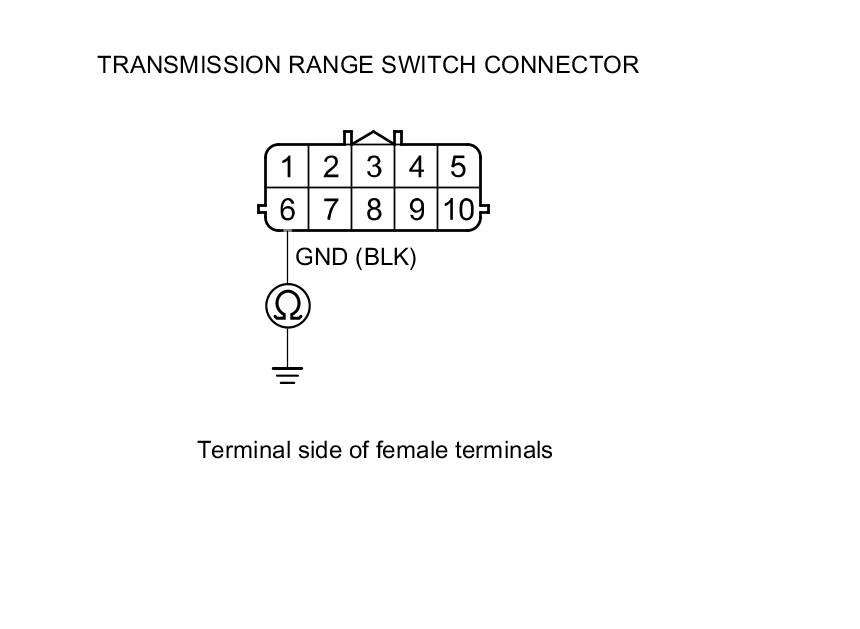 23. Check for continuity between transmission range switch connector terminal No. 6 and body ground.