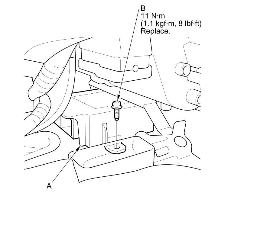 1. Install the SRS unit (A) with the new TORX bolt (B) using a TORX T30 bit.