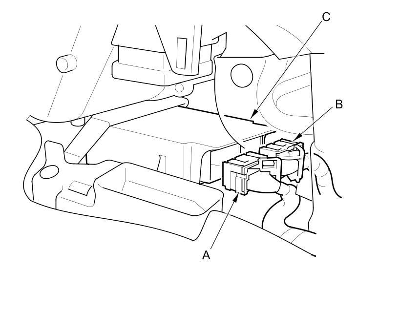 4. Disconnect SRS unit connectors A (39P) and B (39P) from the SRS unit (C).