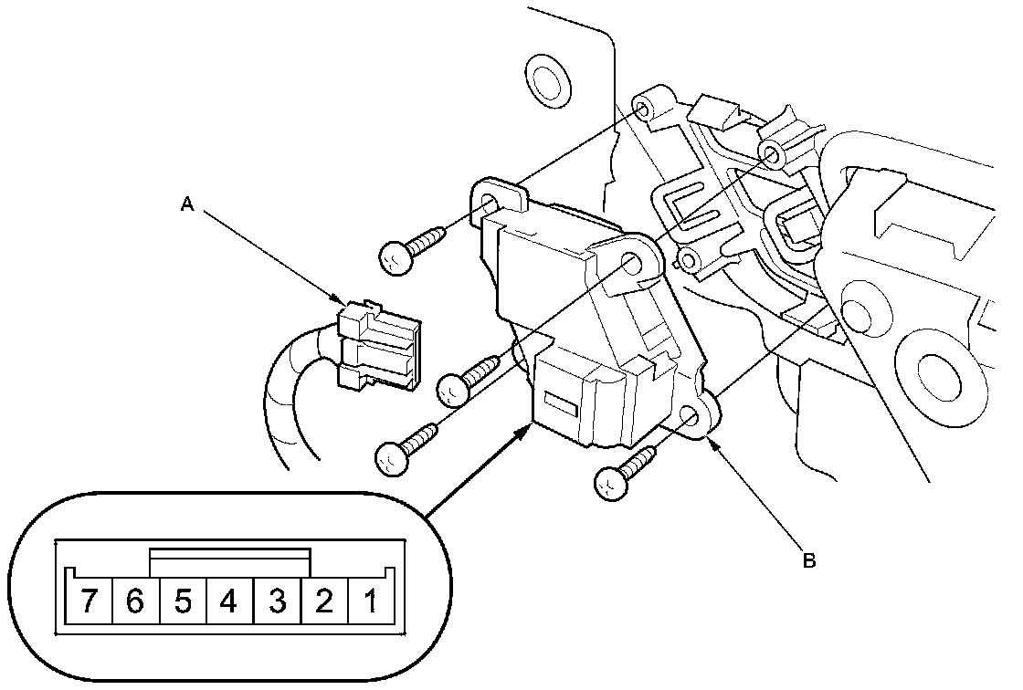 2. Disconnect the 7P connector (A) from the driver's position memory switch (B).