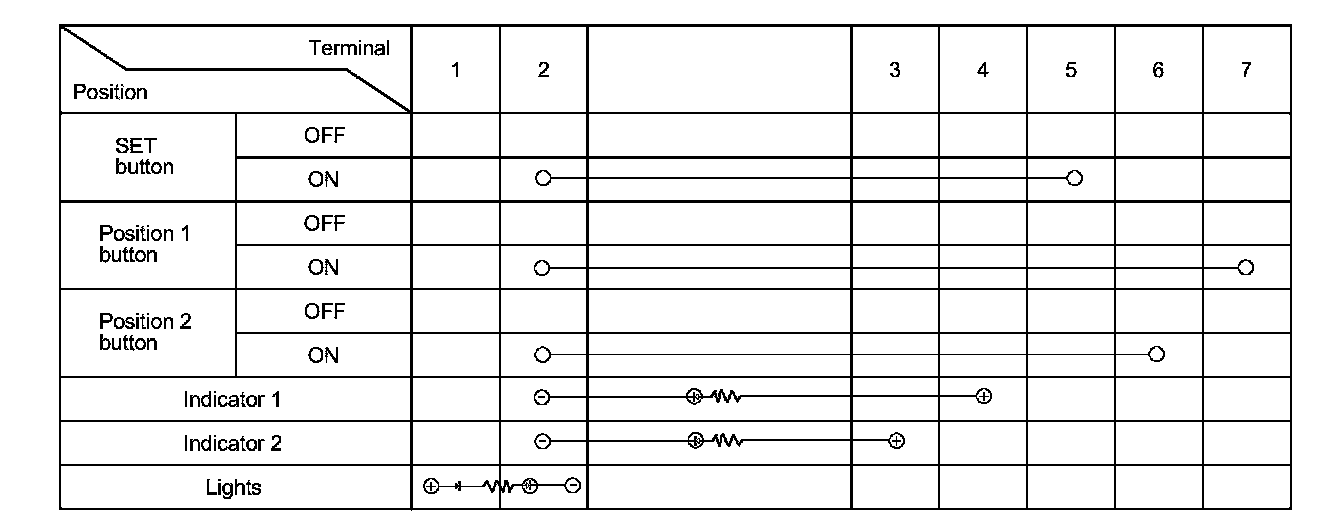 4. Check for continuity between the terminals in each switch position according to the table.