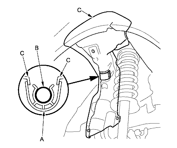 - Make sure the fuel pipe protector (C) is inserted securely into the fuel pipe protector clip.