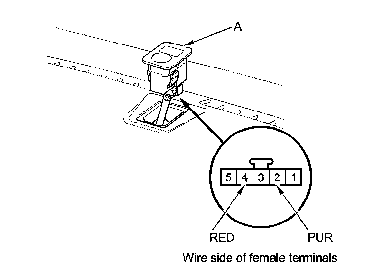 2. Turn the ignition switch to ON (II). Measure the voltage between the terminals with the (+) probe on terminal No. 2 and the (-) probe on terminal No. 4(with automatic lighting ) or No. 1 (without automatic lighting ) with the connector connected.