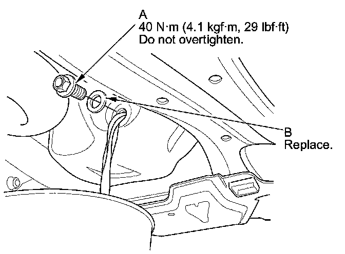 3. Reinstall the drain bolt with a new washer (B) and torque to specification.