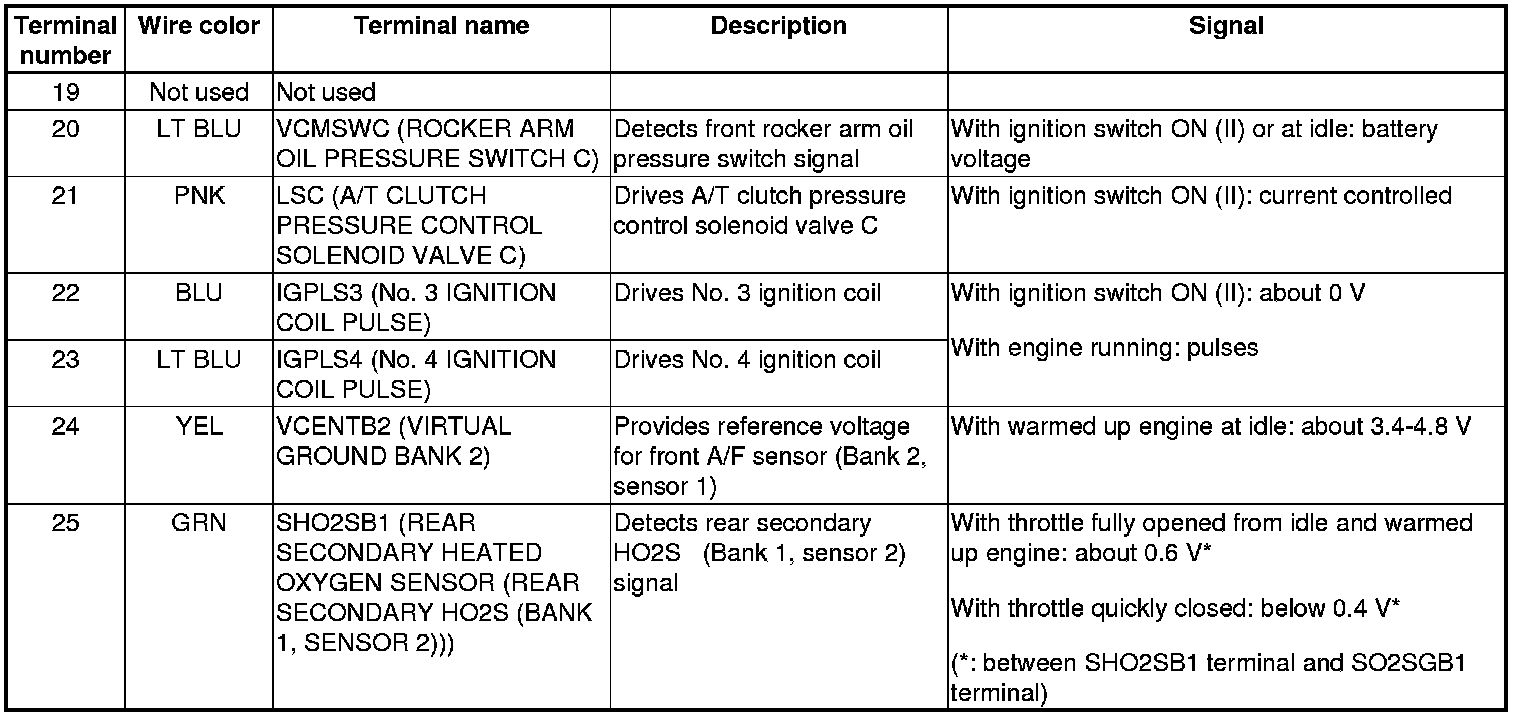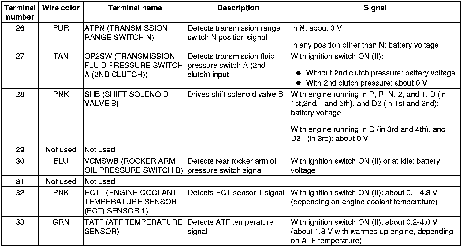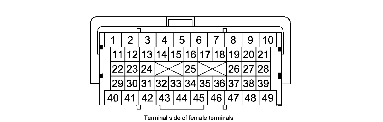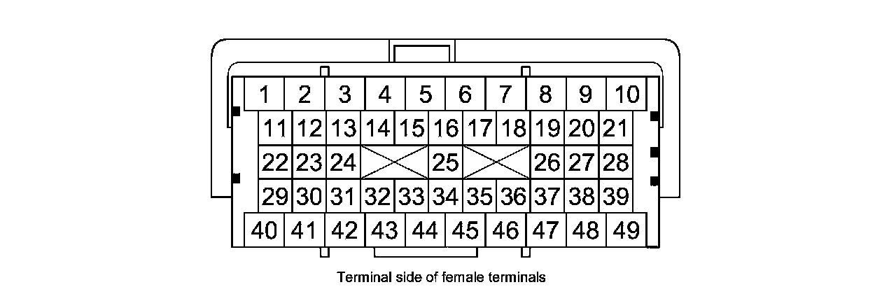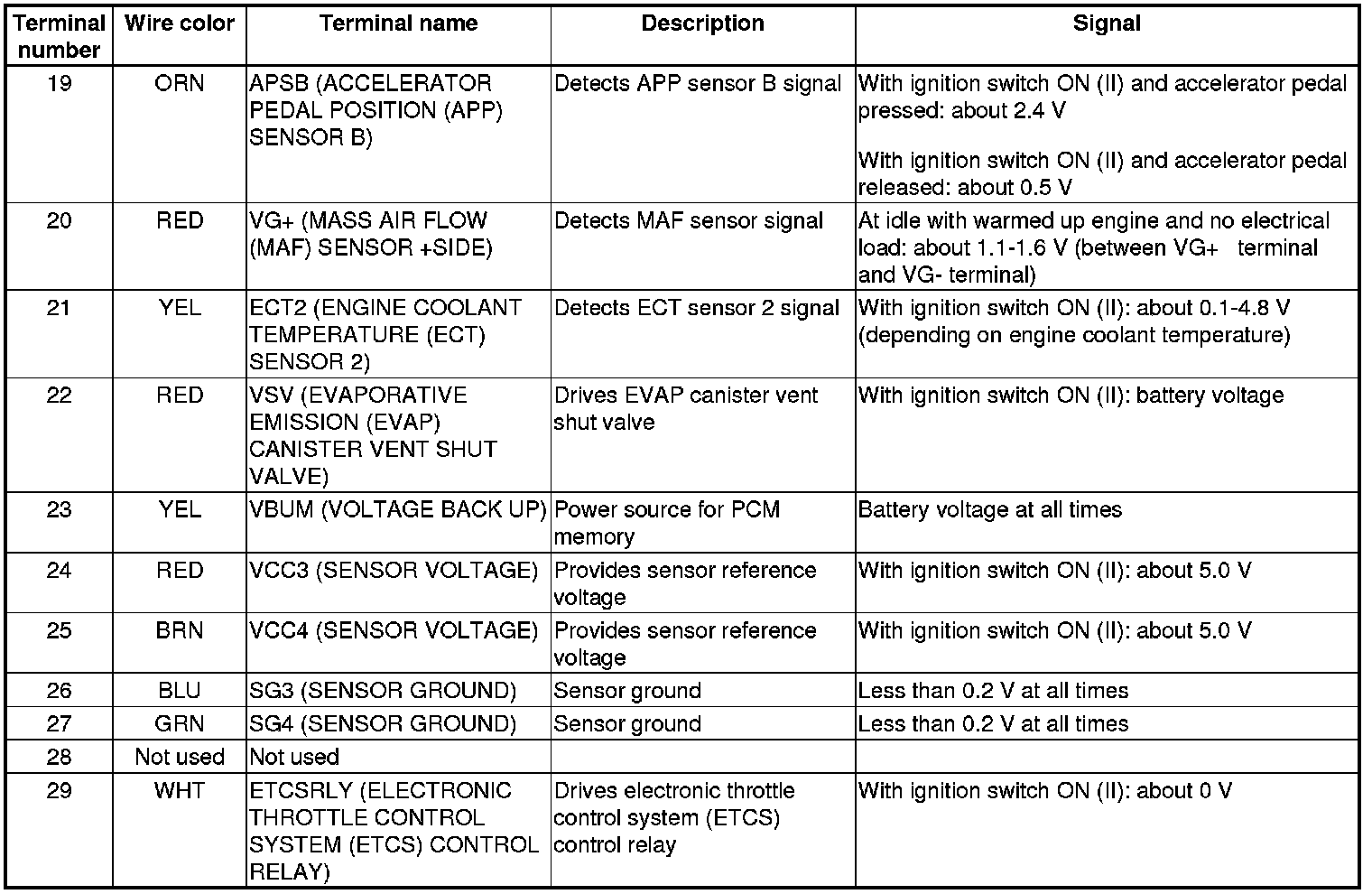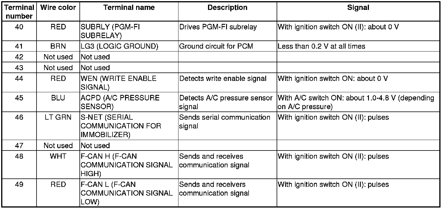 PCM Inputs and Outputs at PCM Connector A (square) (49P)