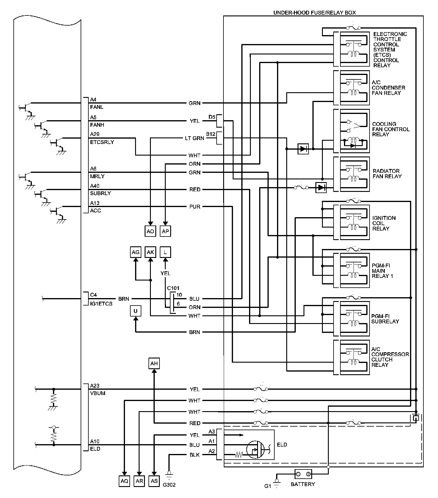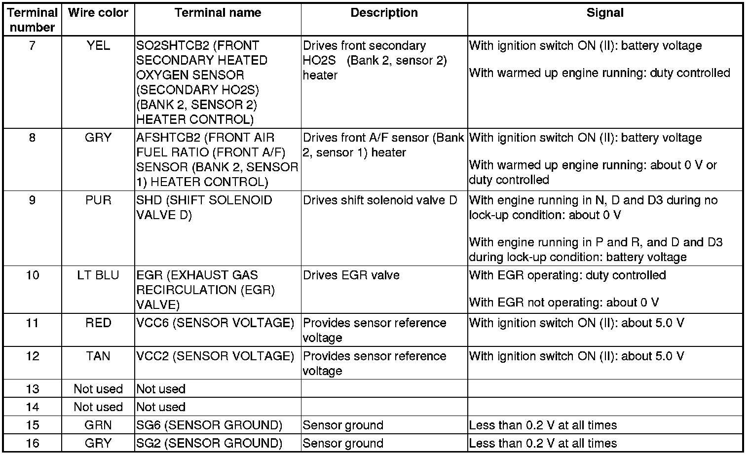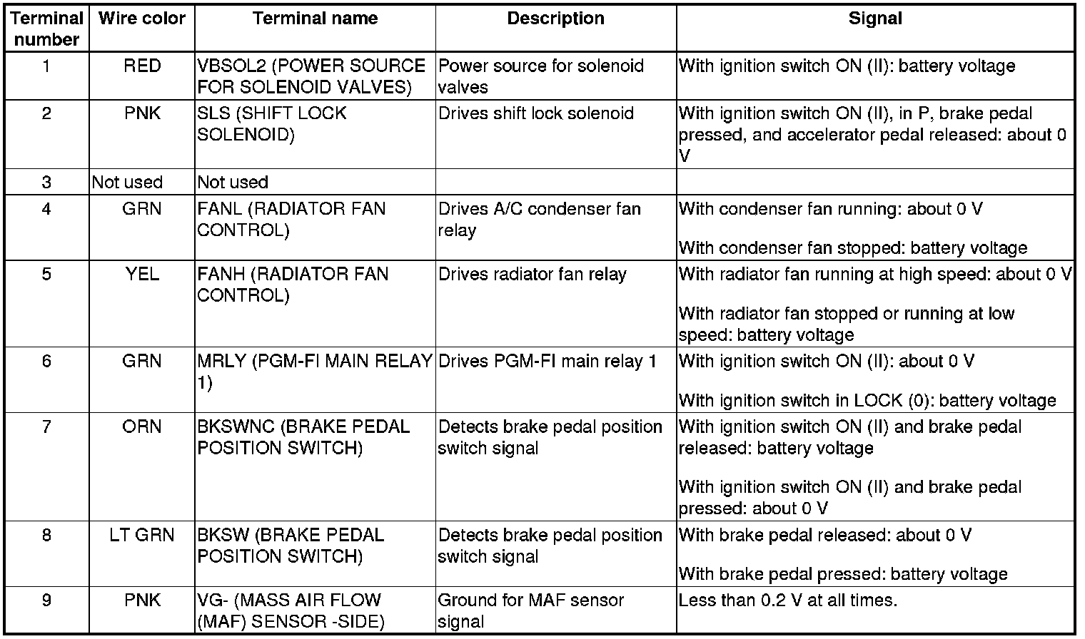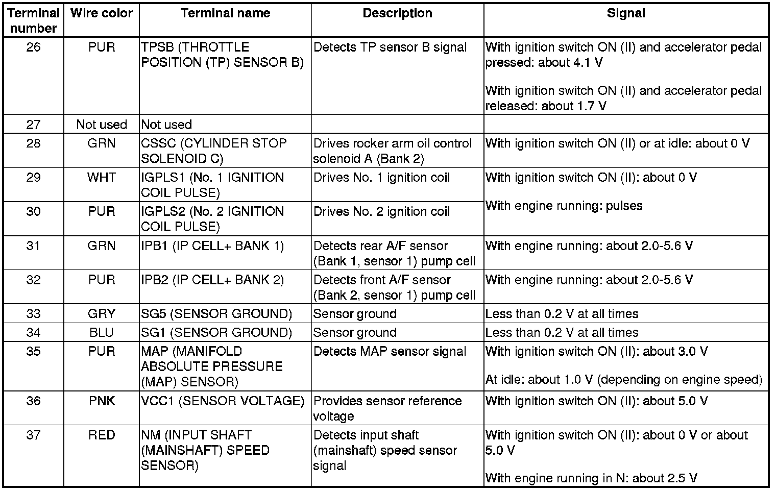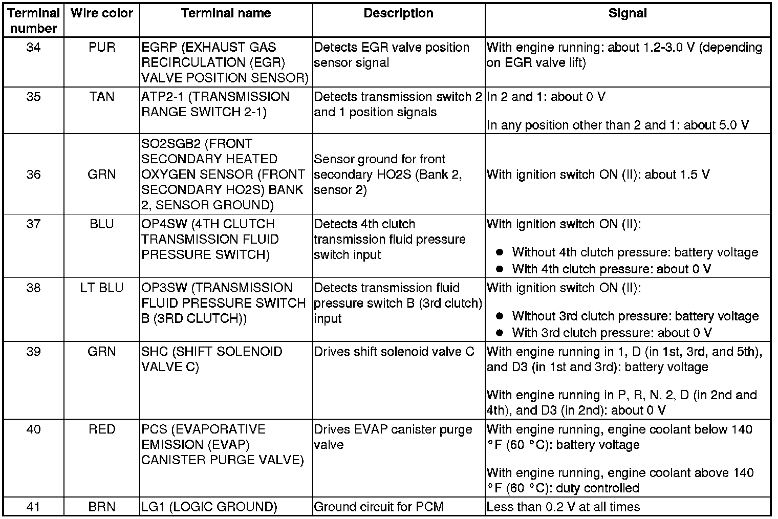 PCM Inputs and Outputs at PCM Connector A (square) (49P)