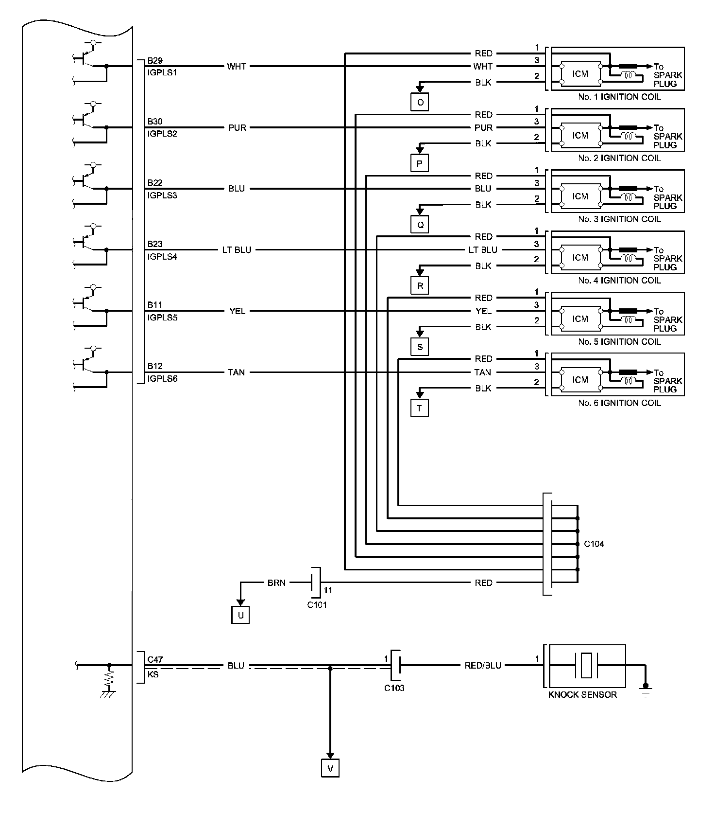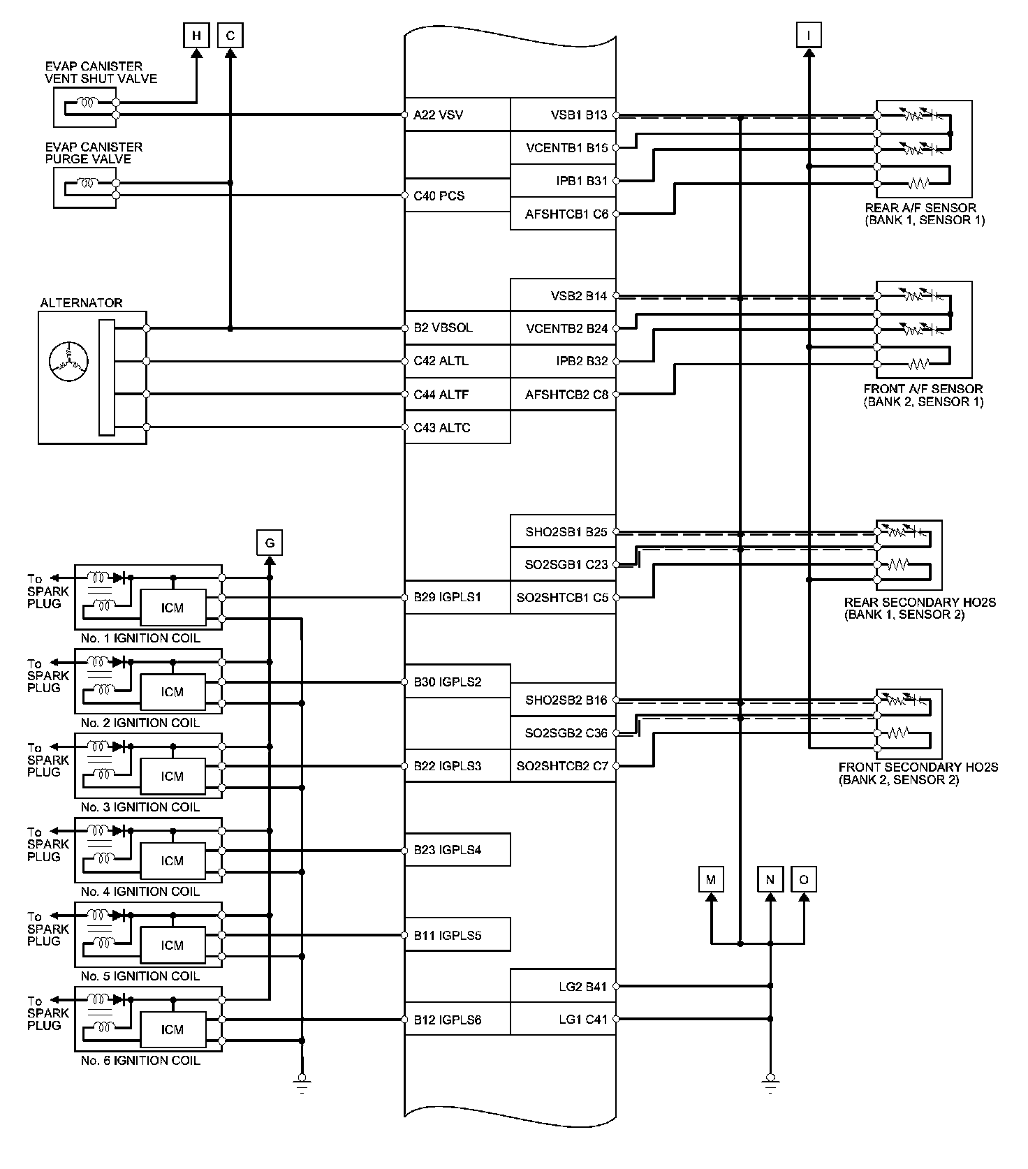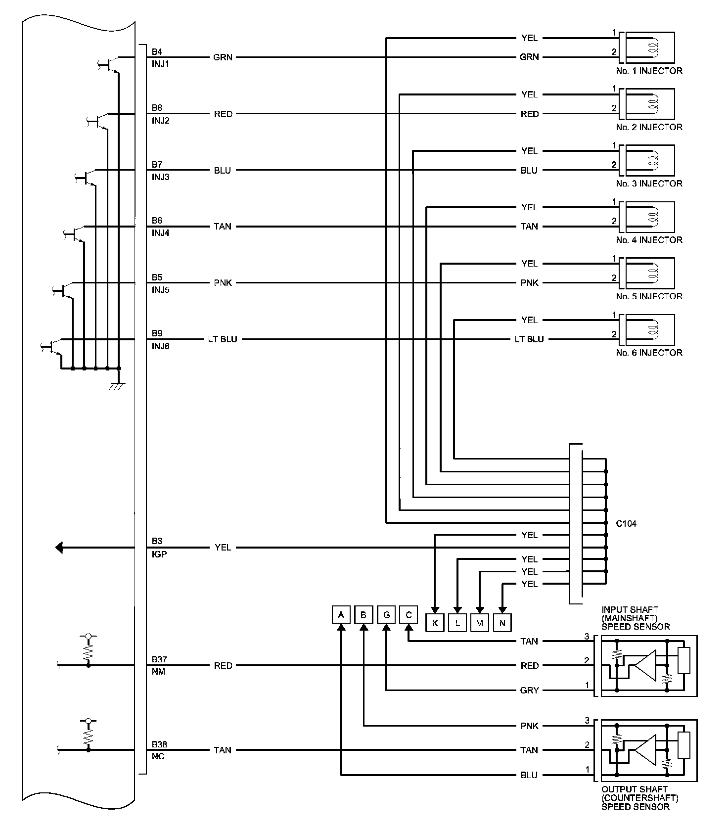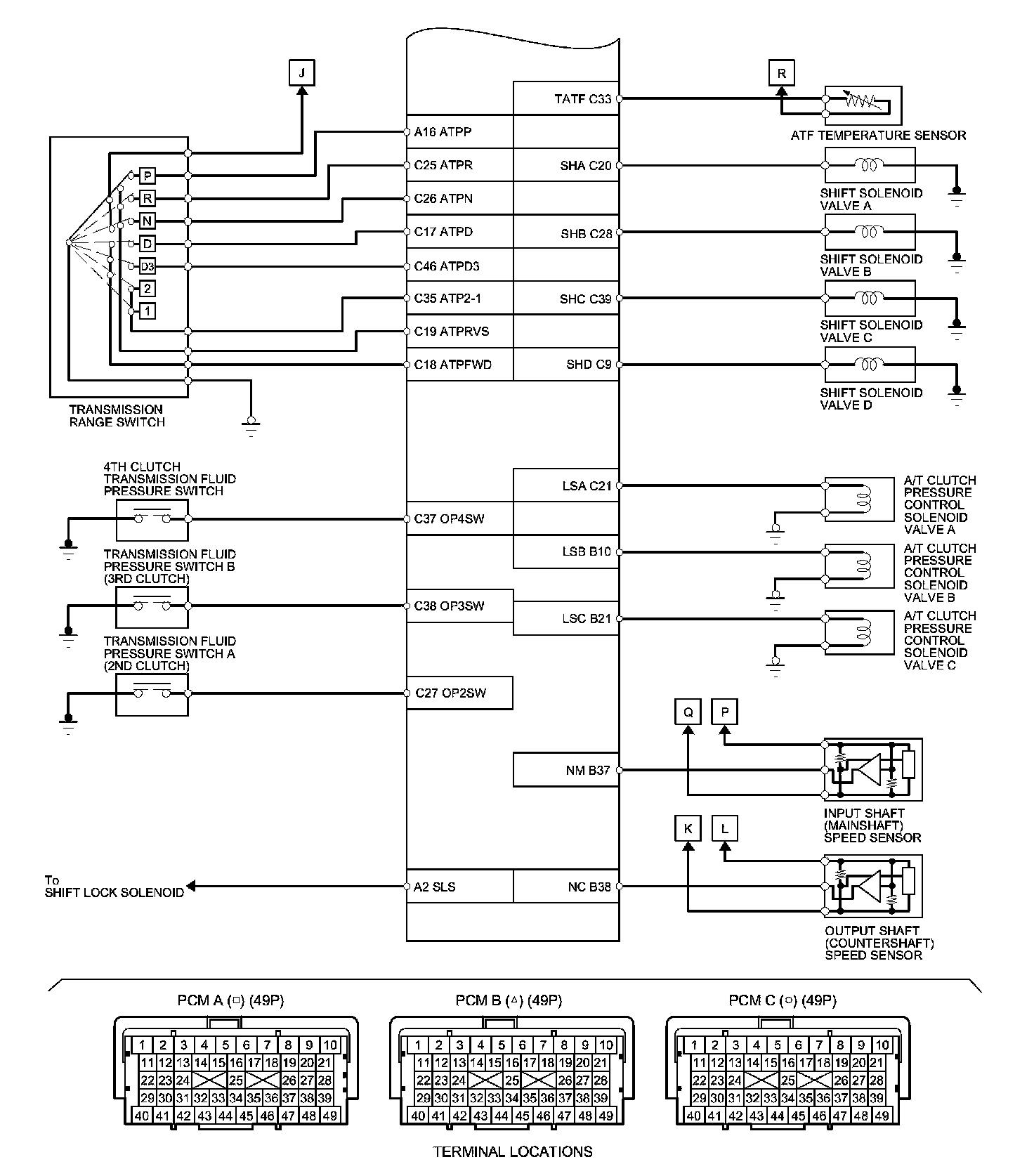 PCM Inputs and Outputs at PCM Connector C (circle) (49P)