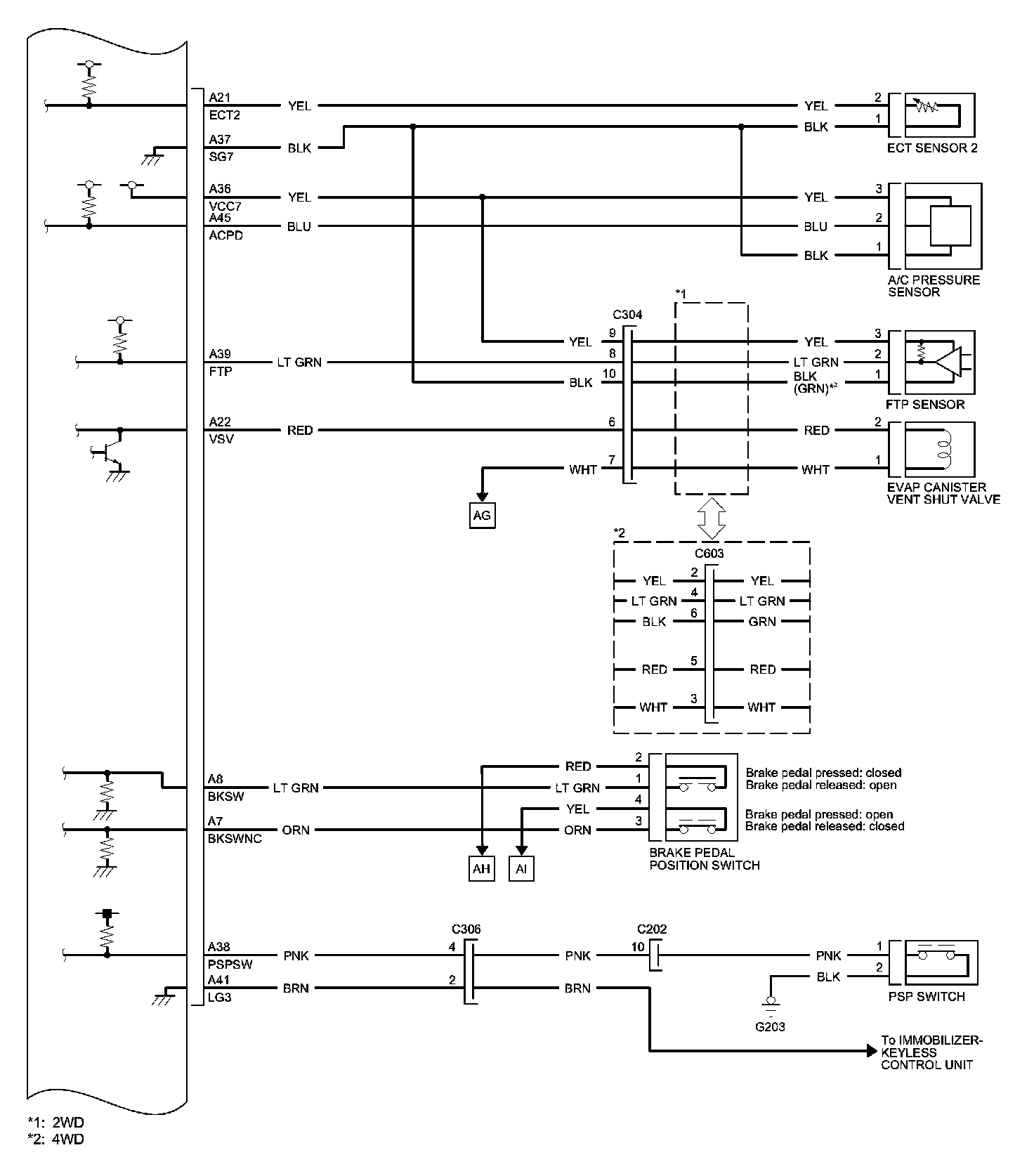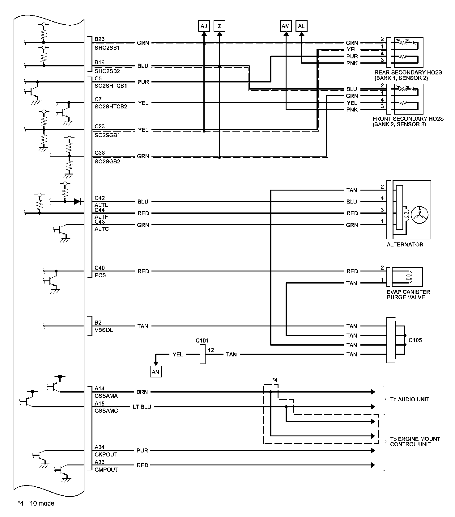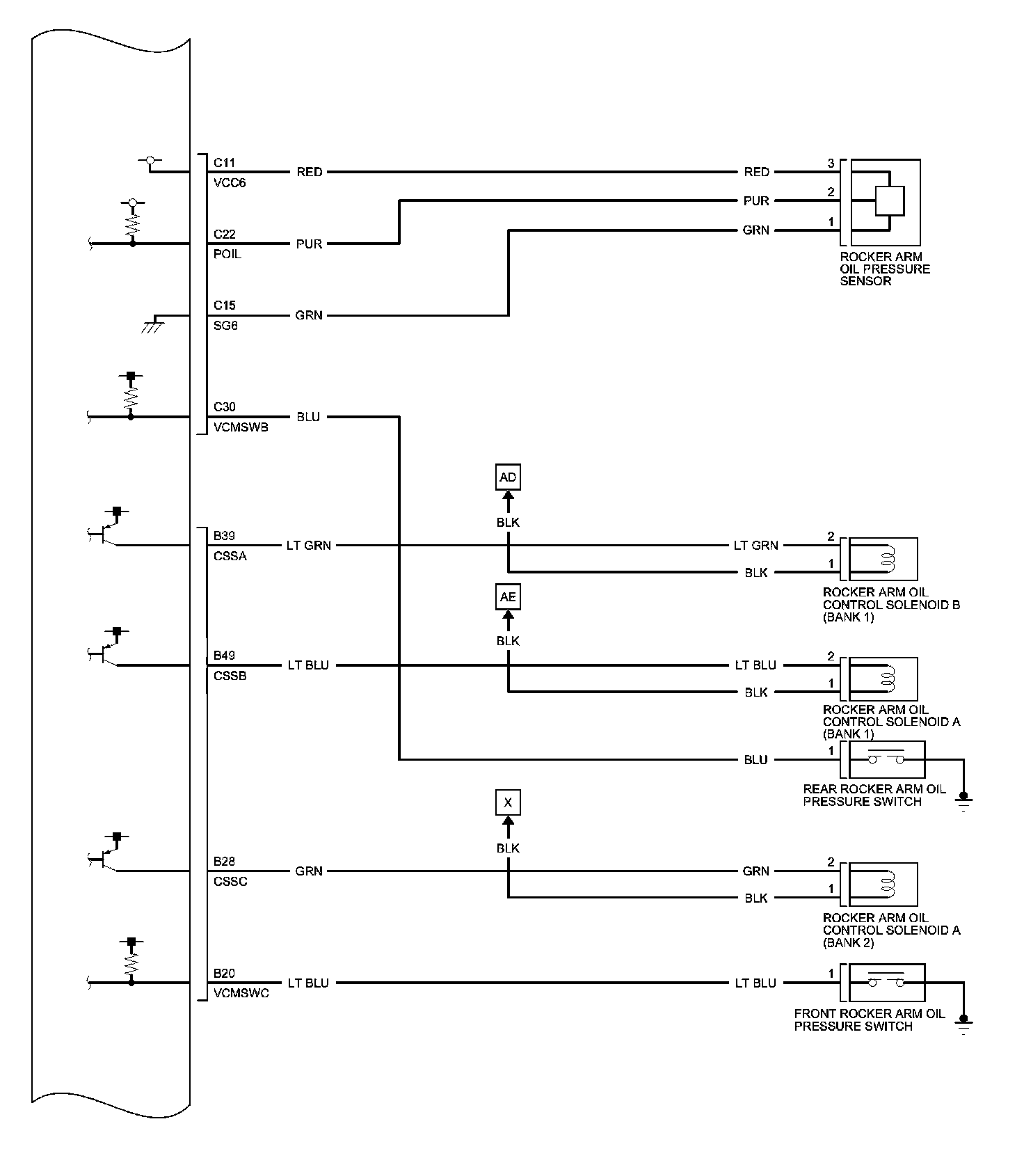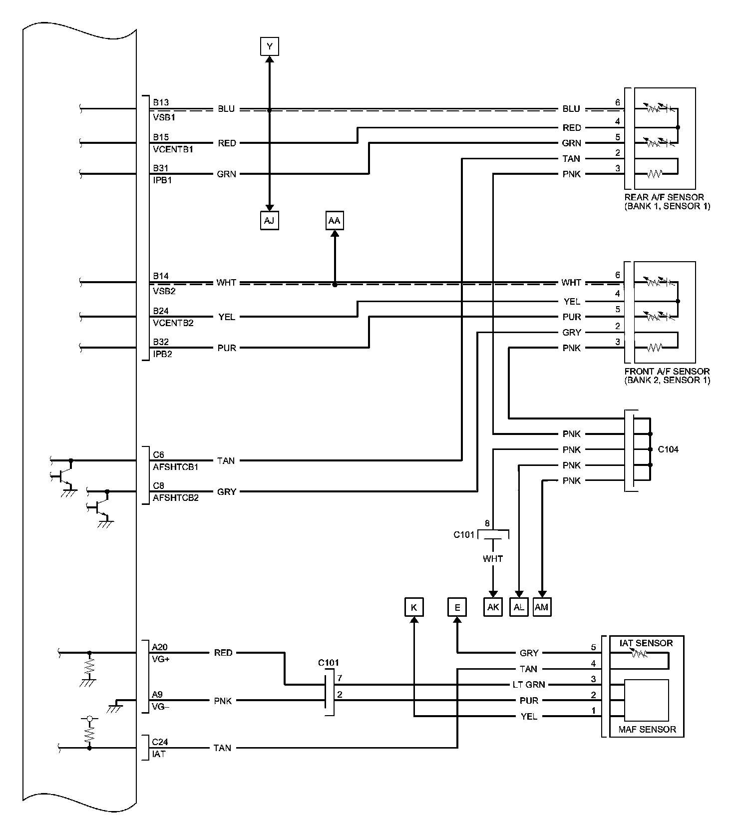 PCM Inputs and Outputs at PCM Connector C (circle) (49P)