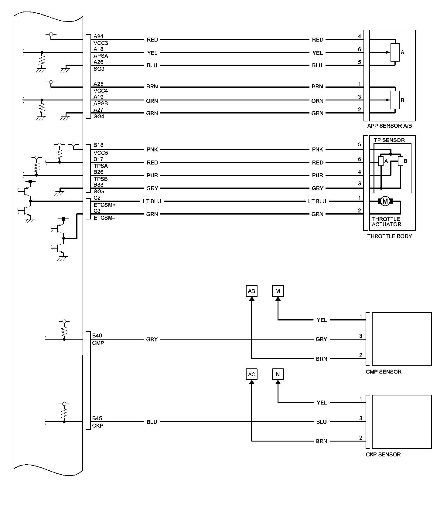 PCM Inputs and Outputs at PCM Connector B (triangle) (49P)
