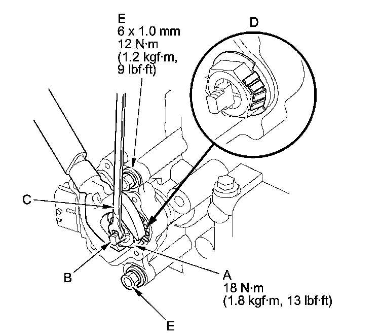 16. Tighten the bolts (E) securing the transmission range switch to 12 Nm (1.2 kg-m, 9 lb-ft).