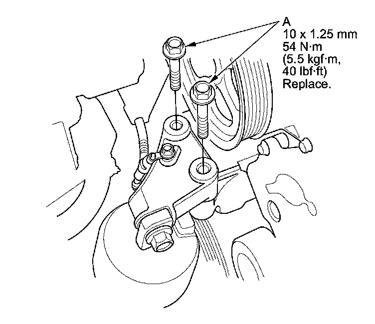 6. Install the new side engine mount bracket mounting bolts (A) into the upper half of the side engine mount bracket. Tighten the bolts to the specified torque.