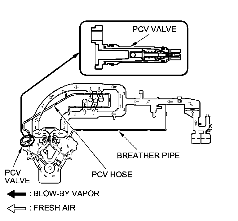 The PCV valve prevents blow-by gasses from escaping into the atmosphere by venting them into the intake manifold.