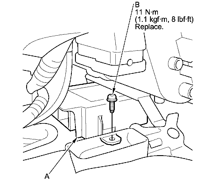 1. Install the SRS unit (A) with the new TORX bolt (B) using a TORX T30 bit.
