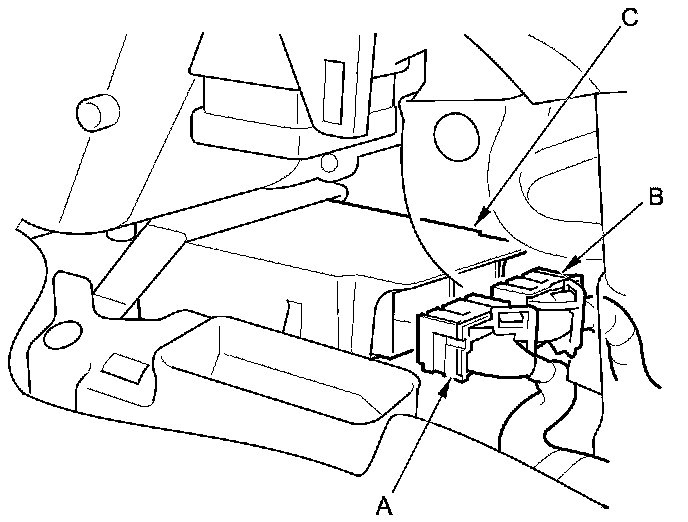4. Disconnect SRS unit connectors A (39P) and B (39P) from the SRS unit (C).