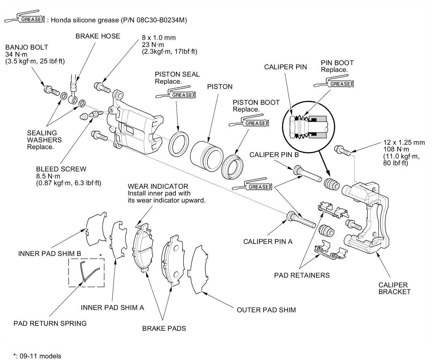 - Use recommended greases in the front caliper set.