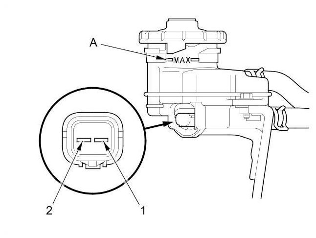 - Fill the reservoir with brake fluid to the MAX (upper) level (A). With the float up, there should be no continuity.
