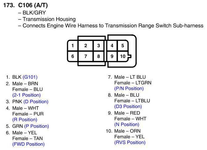 View 173 - C106 Connector View (A/T)
