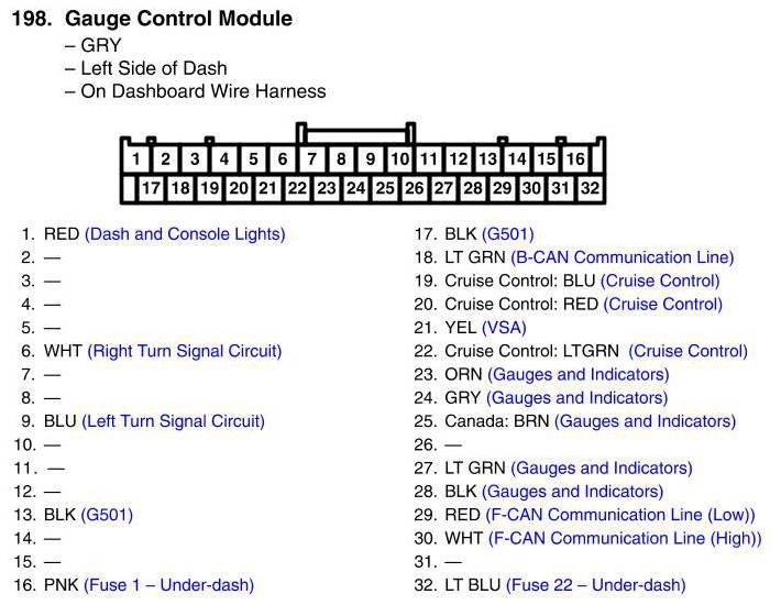 View 198 - Gauge Control Module Connector View