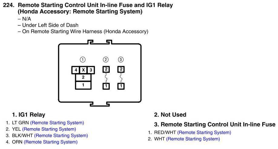 Remote Starting Control Unit In-Line Fuse And IG1 Relay Connector View (Honda Accessory: Remote Starting System)