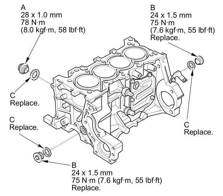 Engine Block Drain Bolt/Sealing Bolt Installation