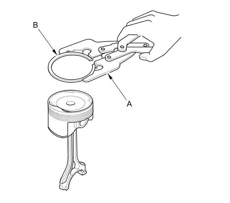 5. Measure the piston ring end-gap (B) with a feeler gauge: