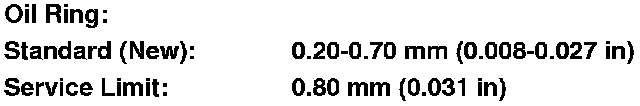 3. Clean all the ring grooves thoroughly with a squared-off broken ring, or a ring groove cleaner with a blade to fit the piston grooves. File down the blade, if necessary. The top and second ring grooves are 1.0 mm (0.039 in) wide, and the oil ring groove is 2.0 mm (0.079 in) wide. Do not use a wire brush to clean the ring grooves, or cut the ring grooves deeper with the cleaning tool.