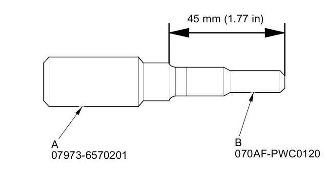 4. Assemble and adjust the length of the adjustable piston pin driver head (A) and insert adjust (B) to 45 mm (1.77 in).