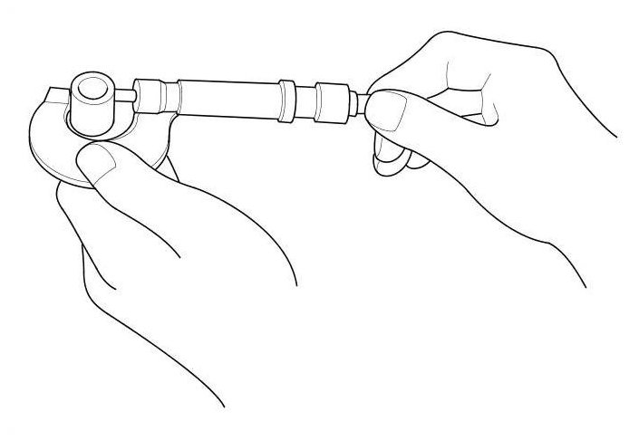 5. With the arrow on top of the piston pointing up, place the piston/connecting rod assembly (A) on the piston base head (B).