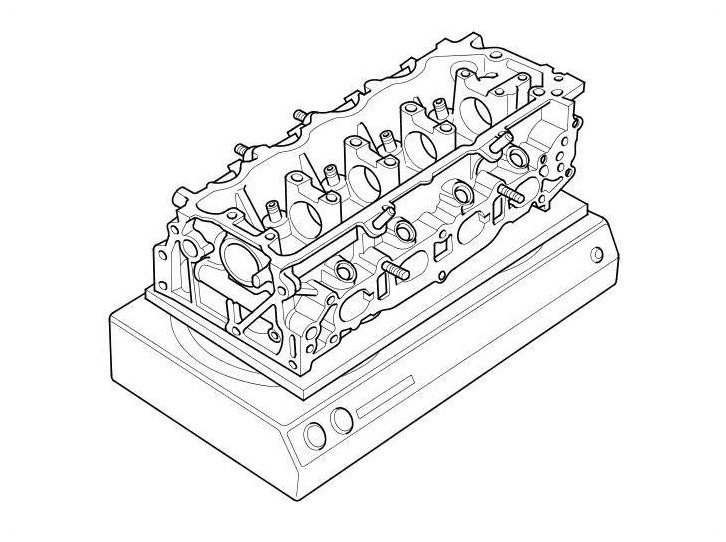 6. Turn the head over, and drive the valve guide out toward the camshaft side of the head.