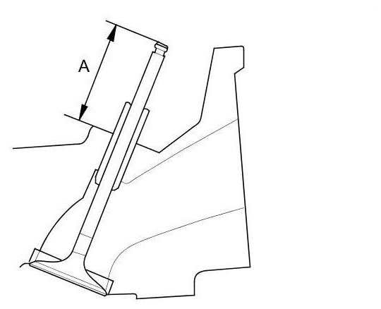8. Insert the intake and exhaust valves in the head, and measure valve stem installed height (A).