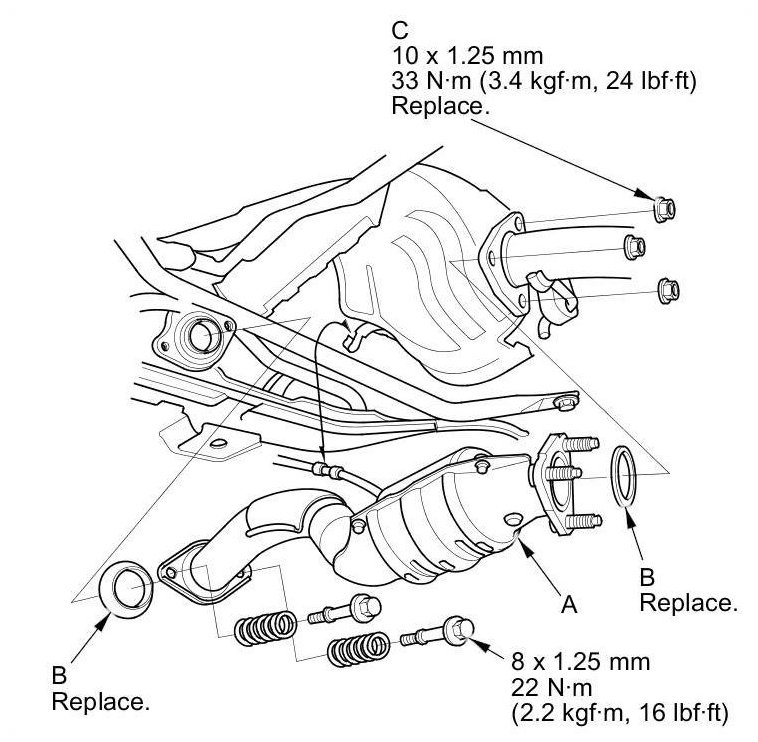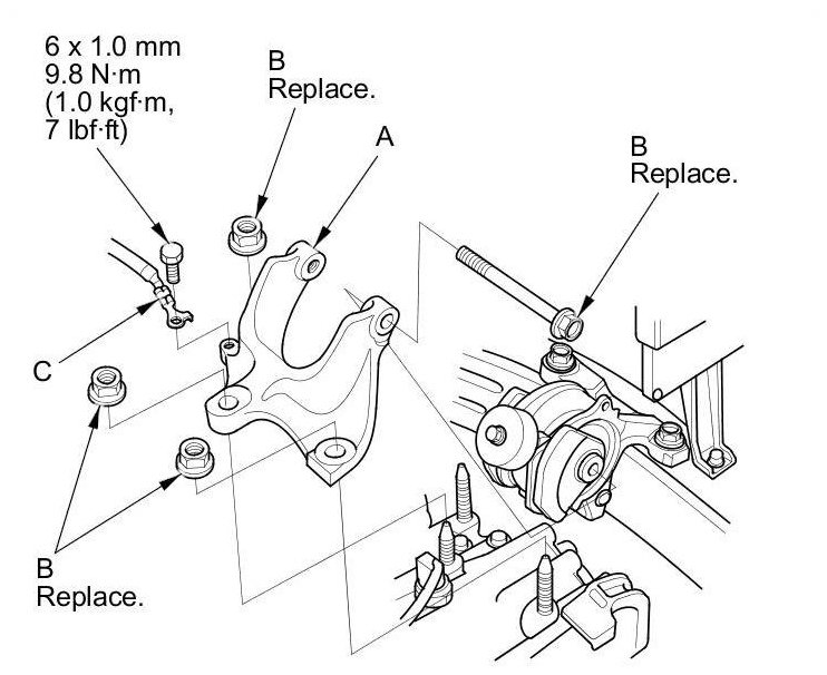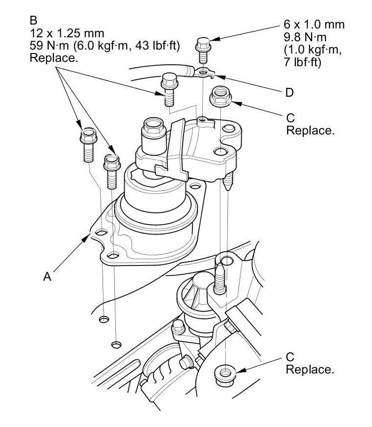 NOTE: Use new gaskets (B) and new self-locking nuts (C).