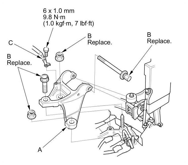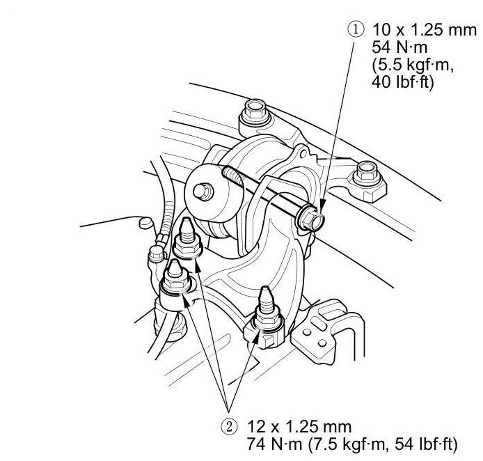 - Reinstall the mounting bolts and support nuts in the sequence given in the following steps. Failure to follow this sequence may cause excessive noise and vibration, and reduce engine mount life.
