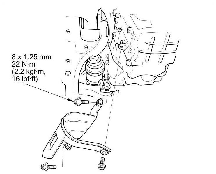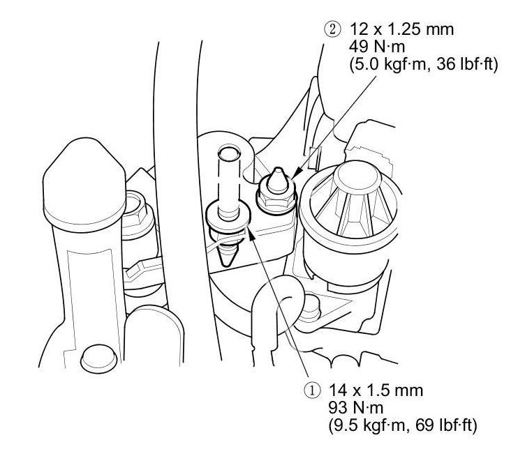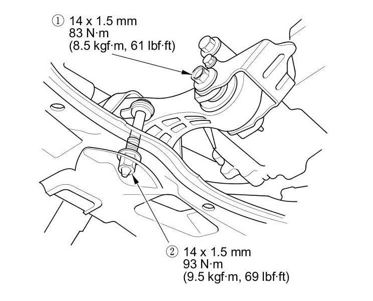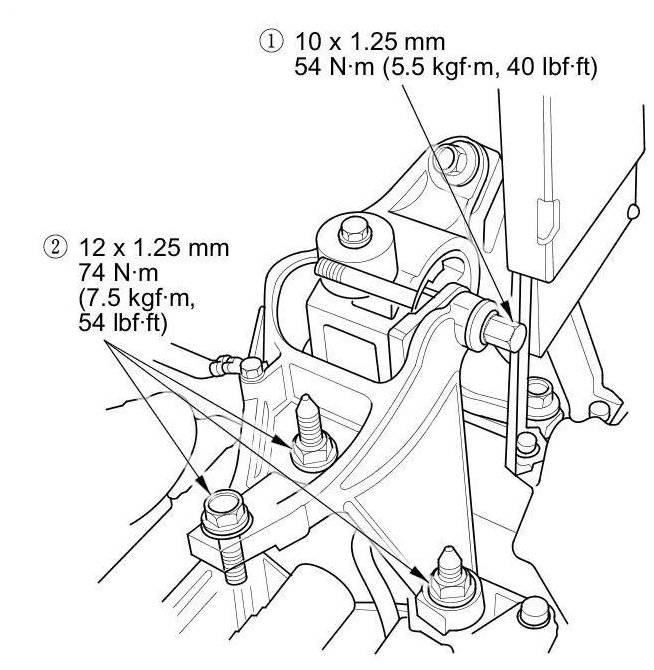 24. Tighten the torque rod mounting bolt and nut in the numbered sequence shown.