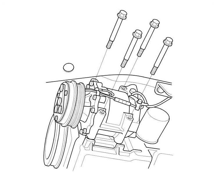 37. With A/C: Remove the A/C compressor without disconnecting the A/C hoses. Do not bend the A/C hoses excessively.