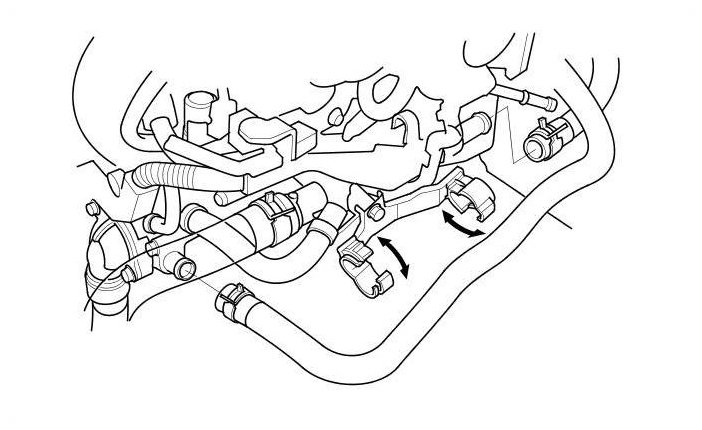 19. M/T model: Remove the clutch slave cylinder, and clutch line bracket mounting bolt.