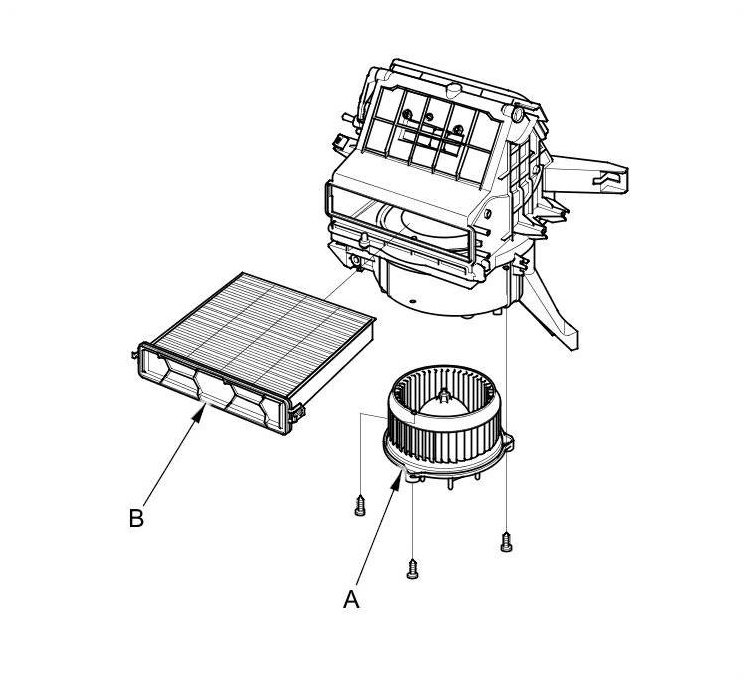 - The blower motor (A) and the dust and pollen filter (B) can be placed without removing the blower unit.
