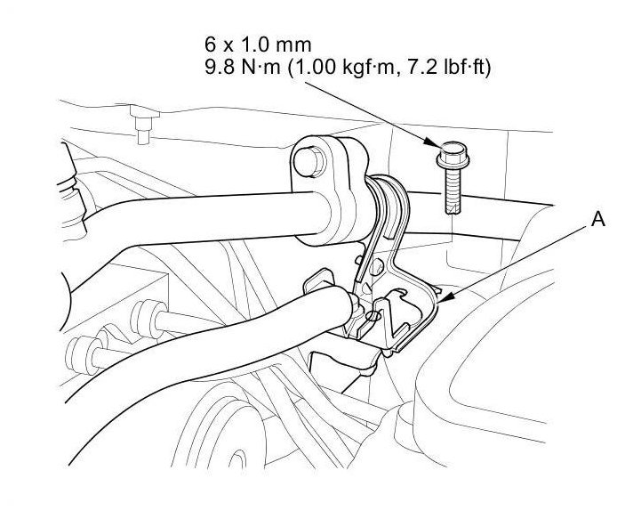 2. Remove the bolt from the A/C line clamp (A).