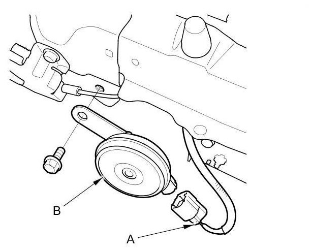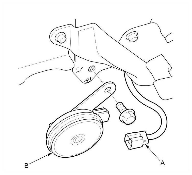 3. Connect the terminal (A) to battery power, and the bracket (B) to body ground.