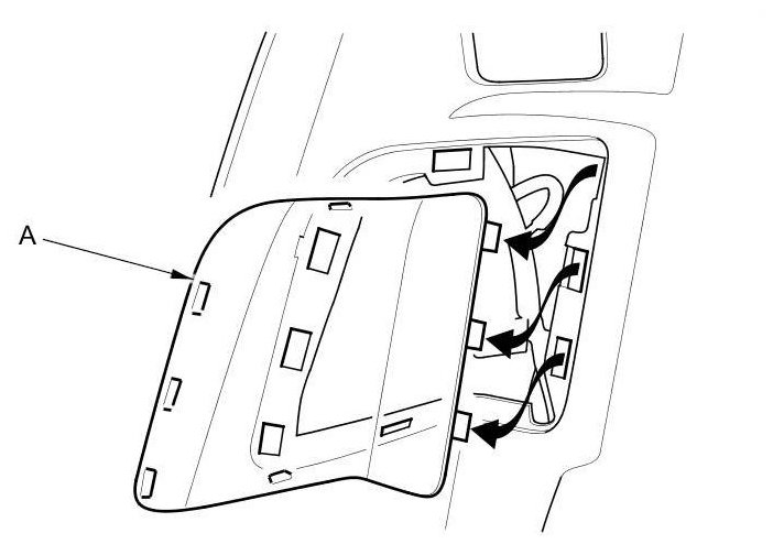 1. Open the tailgate and remove the maintenance lid (A).