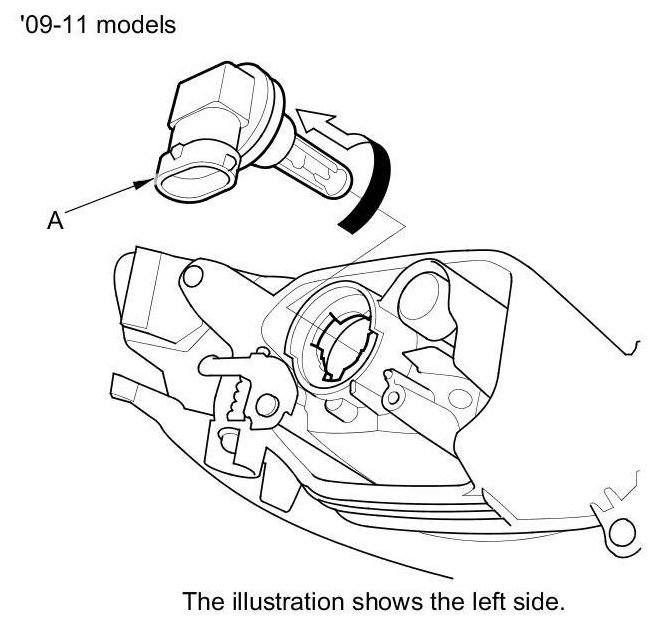 2. Turn the bulb socket (A) 45 ° counterclockwise to remove it from the housing.