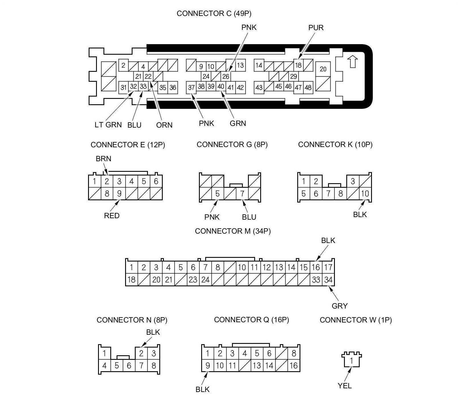 NOTE: All connector views are wire side of female terminals.