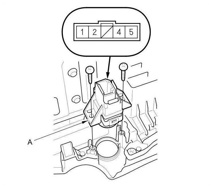 4. If the continuity is not as specified for terminals 1 and 2, replace the switch (A). If the continuity is not as specified for terminals 4 and 5, replace the bulb (B).