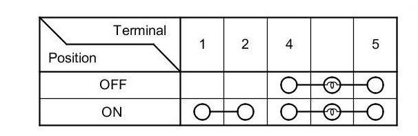 3. Check for continuity between the terminals in each switch position according to the table.