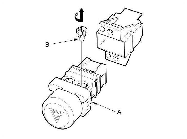 2. Remove the two screws and the hazard warning switch (A).