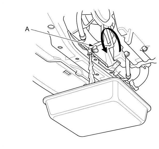 4. Remove the drain bolt (A) located at the rear of the engine block.